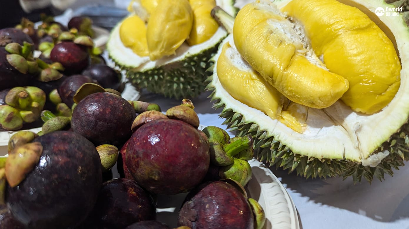 李令达就说:“他们很周到,全部都有配合。因为一般来讲榴梿热气比较高,但我们喝一点椰子水,吃一点山竹,就把热气解掉。”