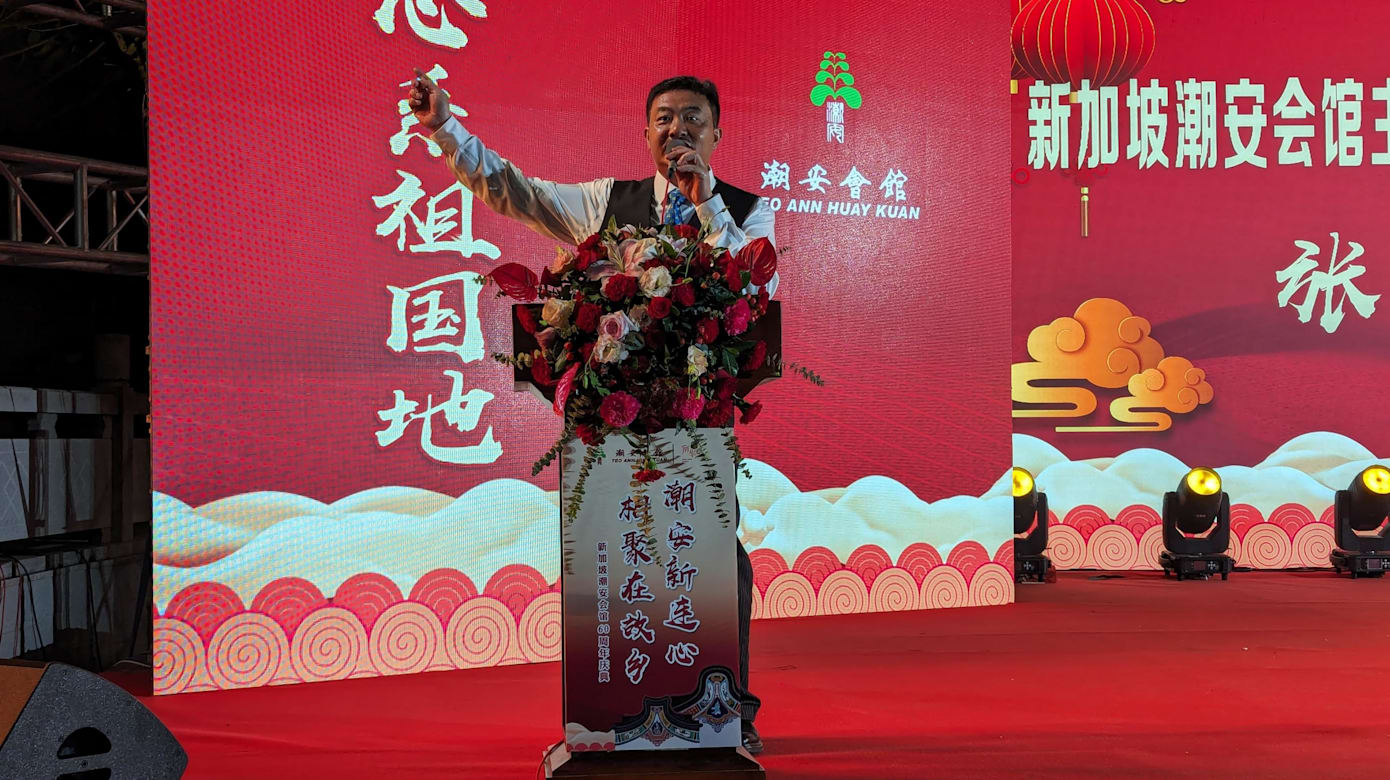 潮安会馆主席张学彬在晚会致辞中表示,这里是潮籍会员祖先们下南洋的出发点,周年庆活动首次选在青龙古庙举行,是希望潮籍会员与乡亲饮水思源。