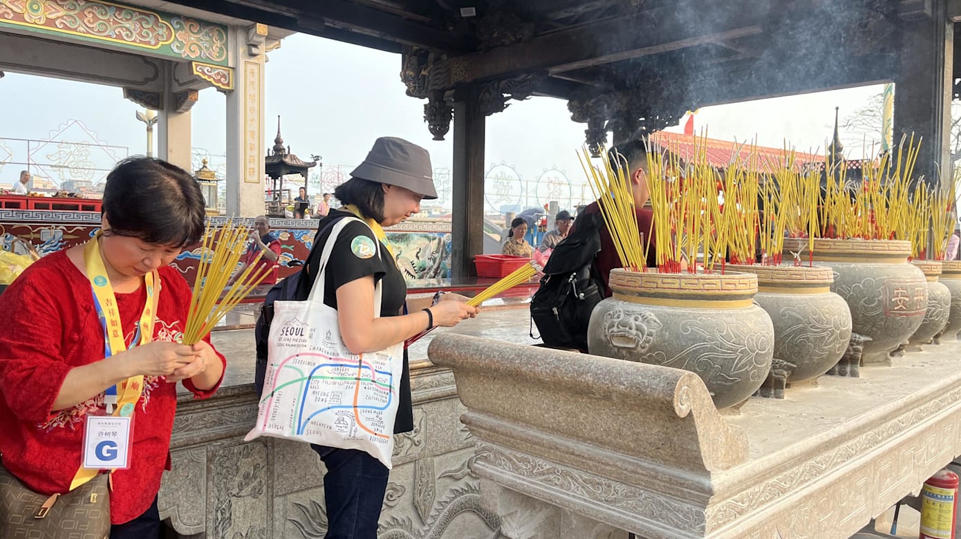 他们昨天在潮安会馆主席张学彬及理事带领下,到位于中国潮州市的青龙古庙,一同祈福,凝聚乡情。