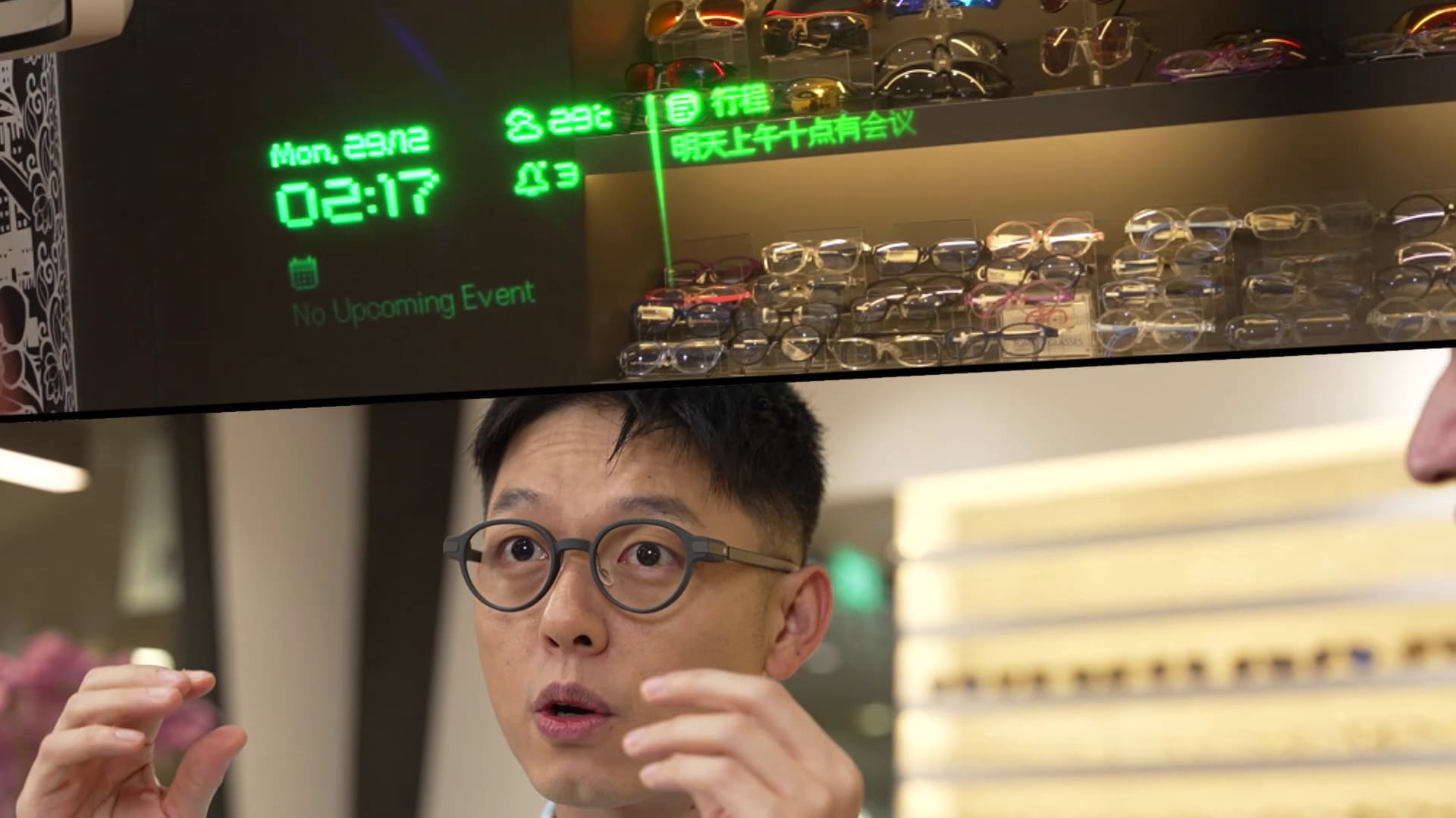 外表与一般眼镜无异的AI智能眼镜内有乾坤,能显示资讯。