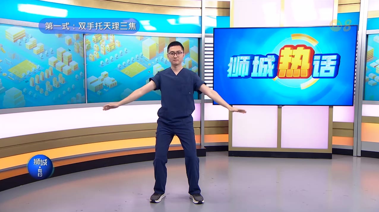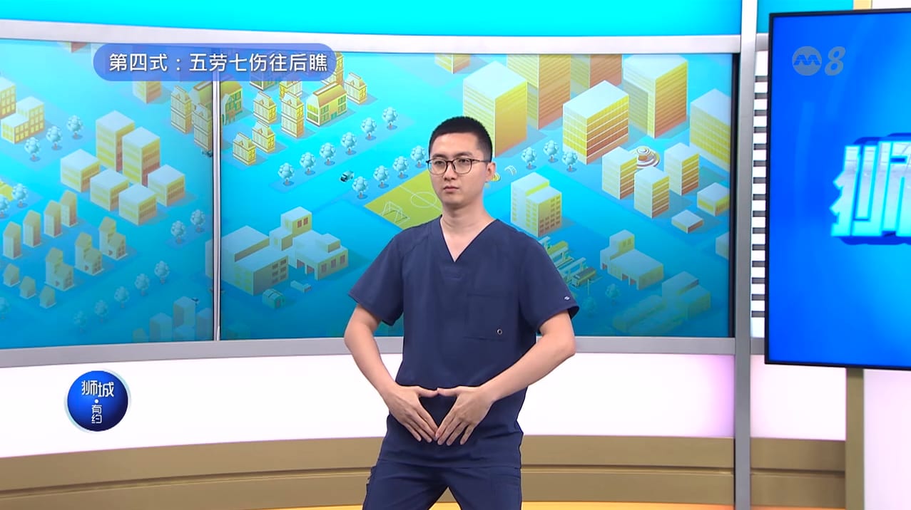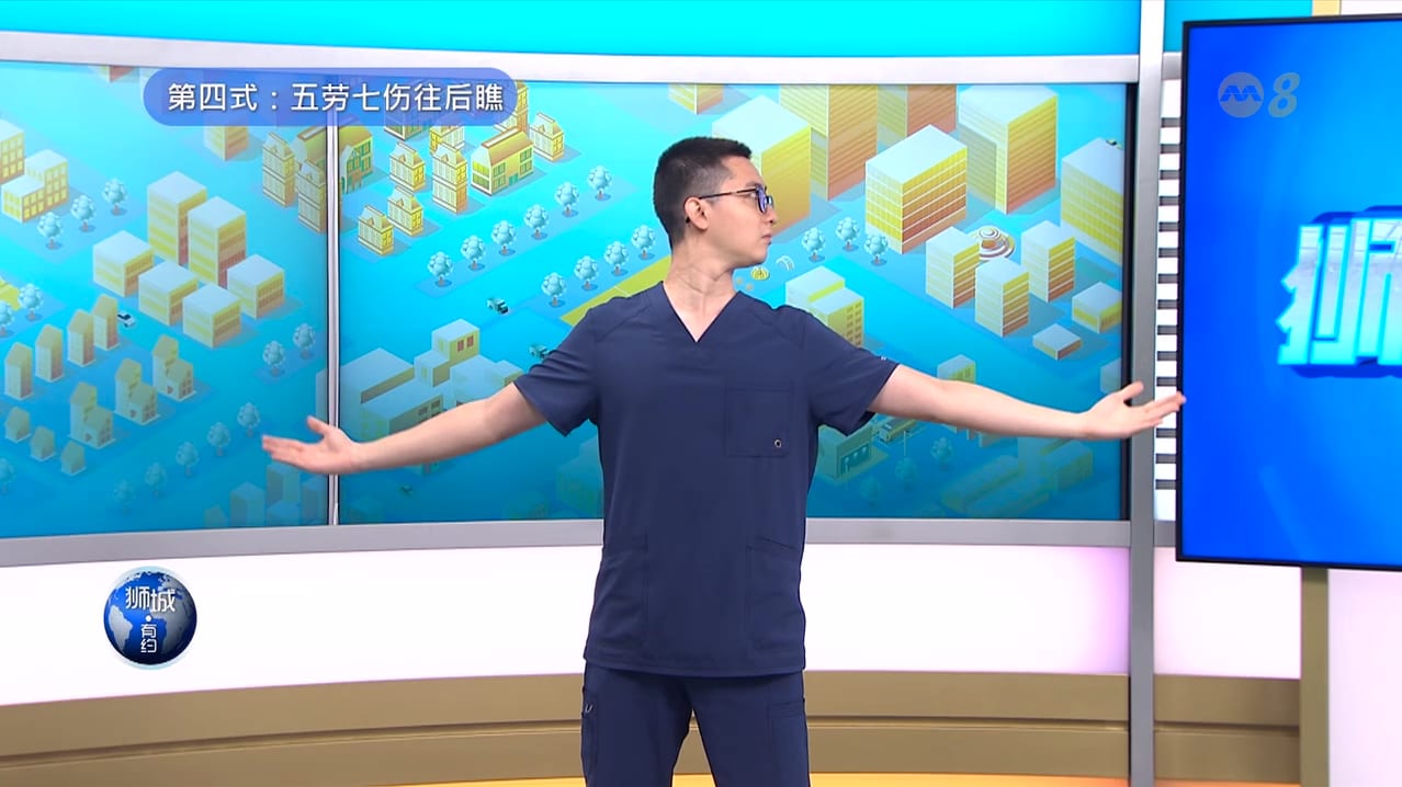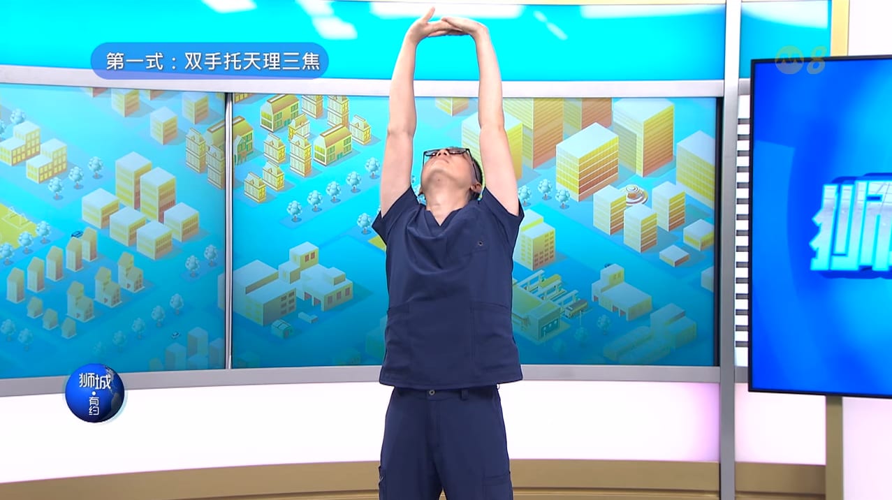 孔德川医师提倡“道法自然”,介绍大家早上练习简单的八段锦动作,尤其是其中两个: