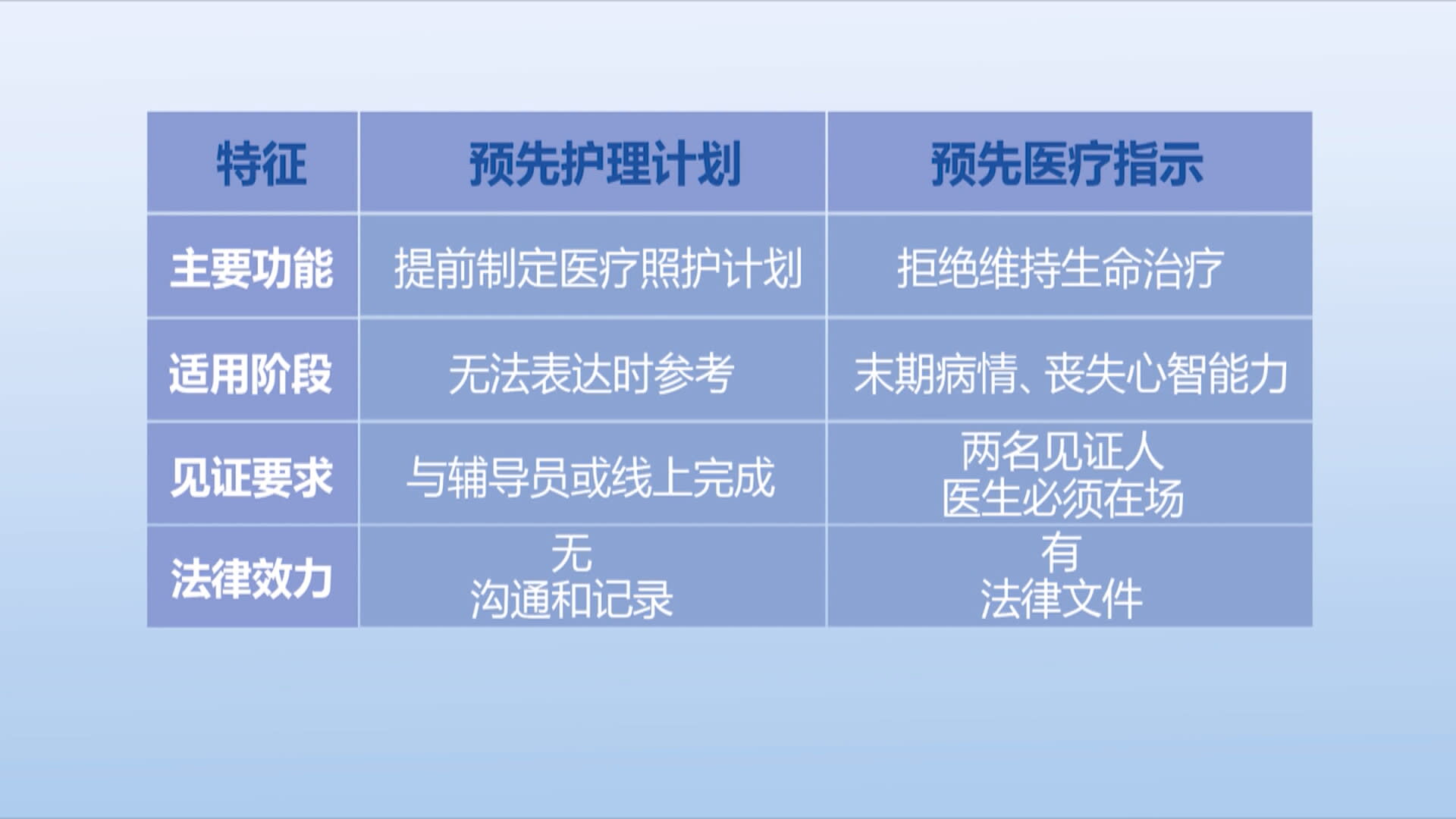 预先护理计划 vs 预先医疗指示